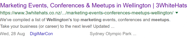 Events – Make sure your event can be easily discovered on search engines. You can show up on search engine listings for events in a particular area.